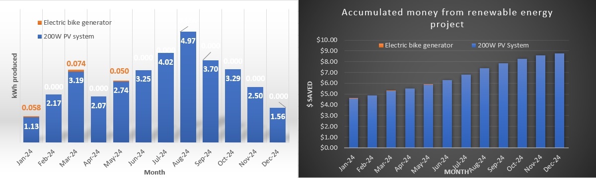 Monthly kWh generated | Total kWh generated | Total $ pledged | Total installed capacity |